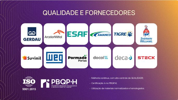 Possui preparação para ar-condicionado e água quente, além de sacada técnica.
